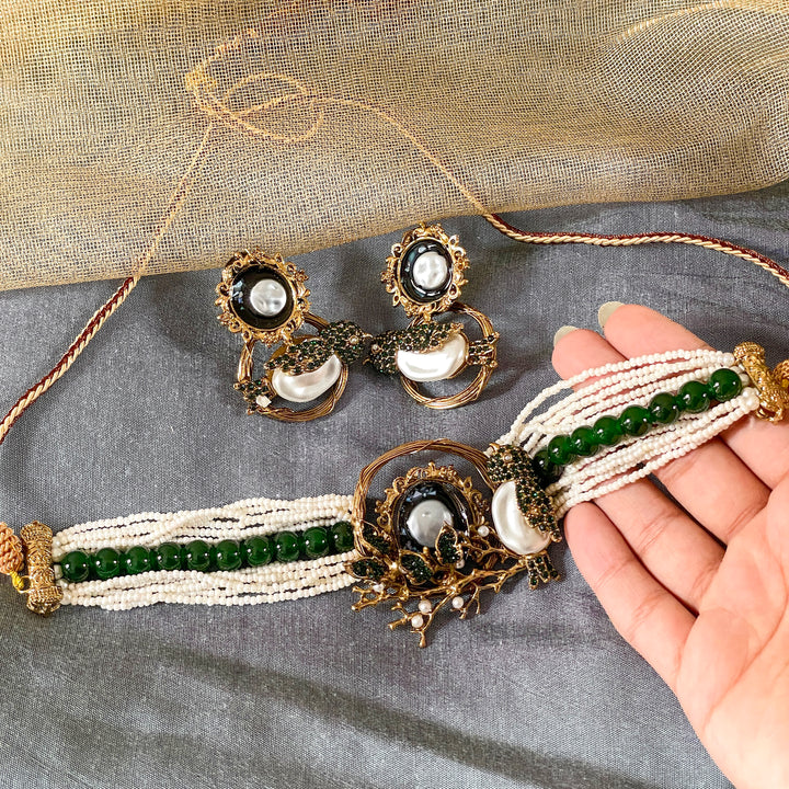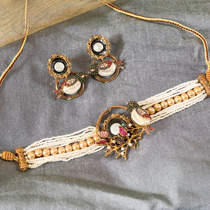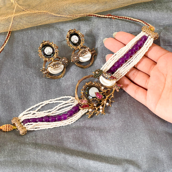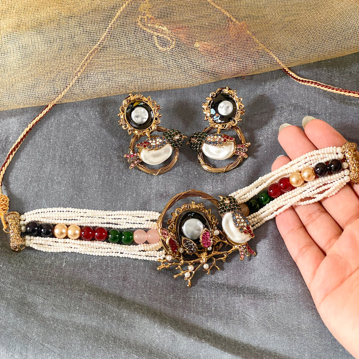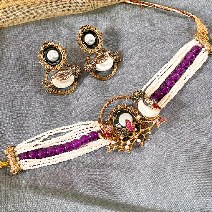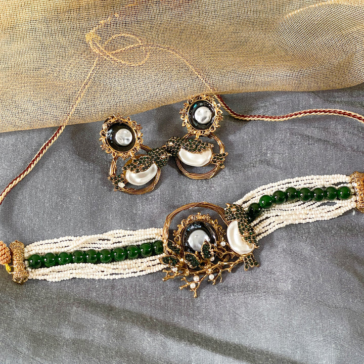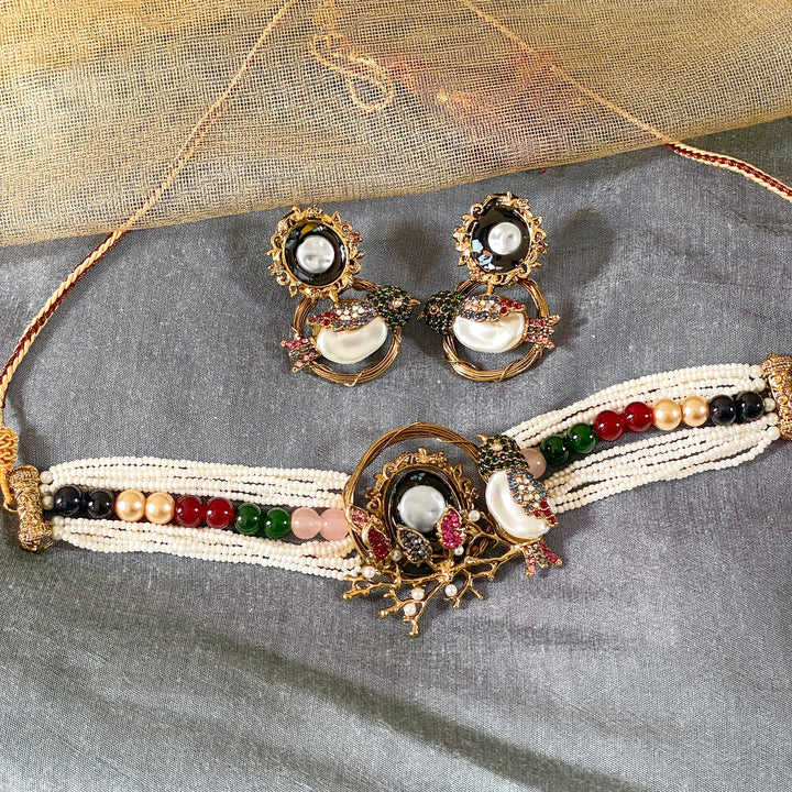 Elevate your traditional look with our exquisitely handcrafted Parinaaz Choker Set (CS-59). This regal set features: