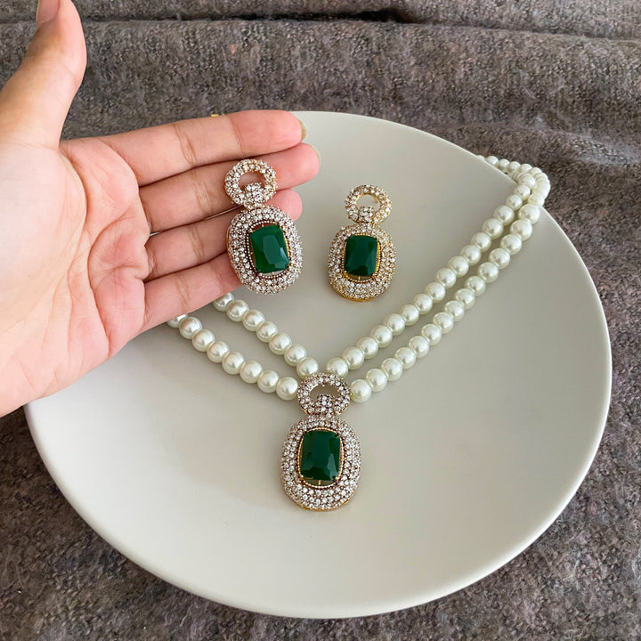 - Matching Earrings: The set includes matching earrings with a captivating emerald stone framed with dazzling crystals.