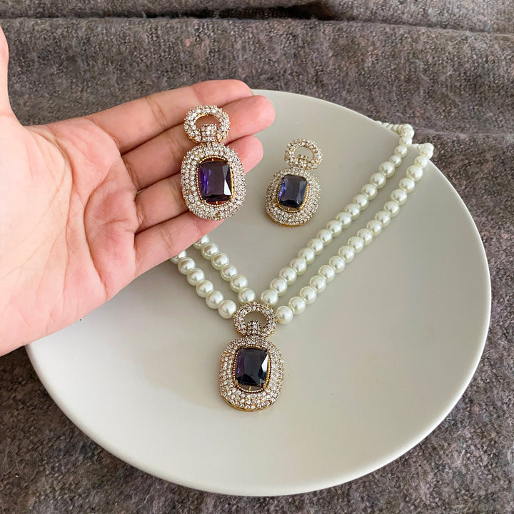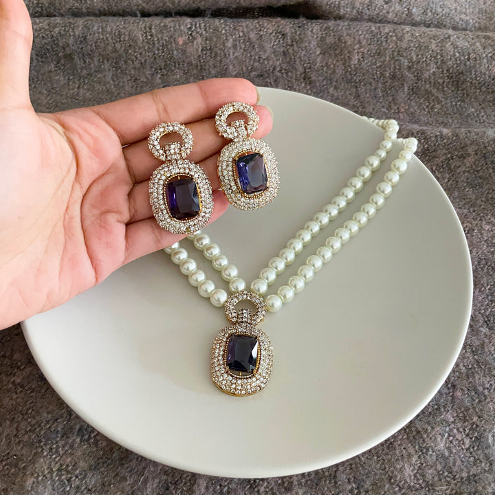 Experience the epitome of elegance with the "Dur e Husun Pearl & Emerald Grandeur" necklace set. Inspired by the Persian phrase "Pearl of Beauty," this exquisite set is a true testament to timeless luxury. The centerpiece, a stunning emerald pendant, is meticulously crafted with sparkling crystals, radiating a captivating glow. This opulent pendant is gracefully suspended from a strand of lustrous pearls, creating a symphony of elegance and sophistication. The matching earrings complete the look, featuring a captivating emerald stone framed with dazzling crystals. This set is a perfect heirloom piece for special occasions or to add a touch of grandeur to your everyday style.