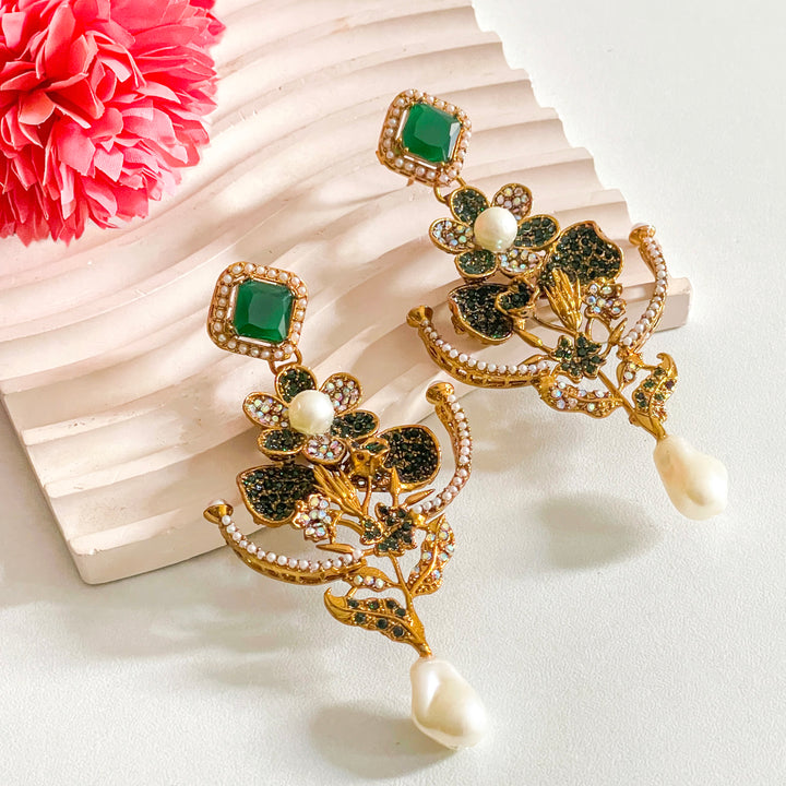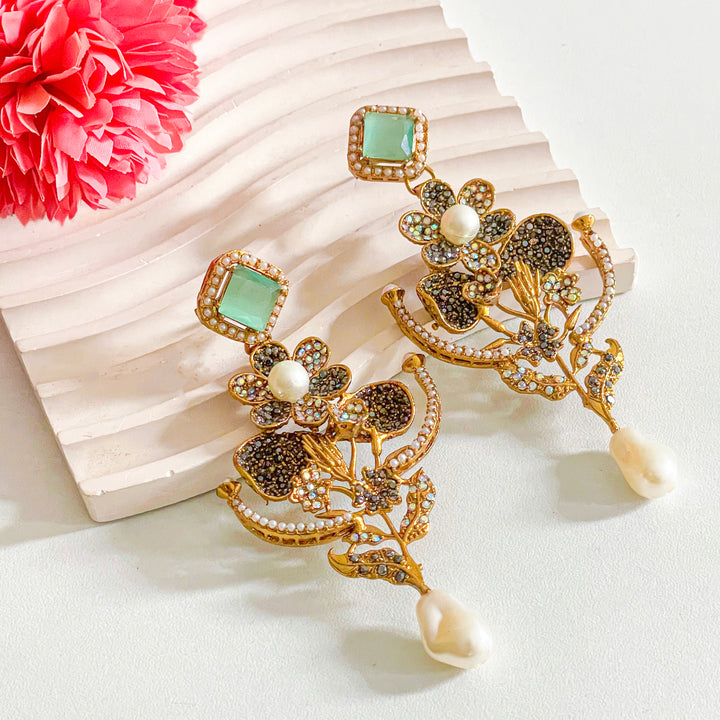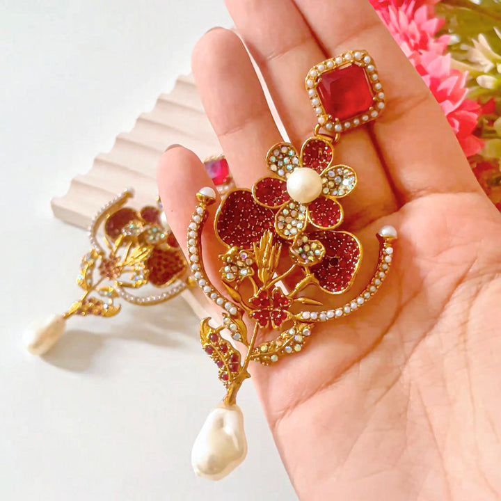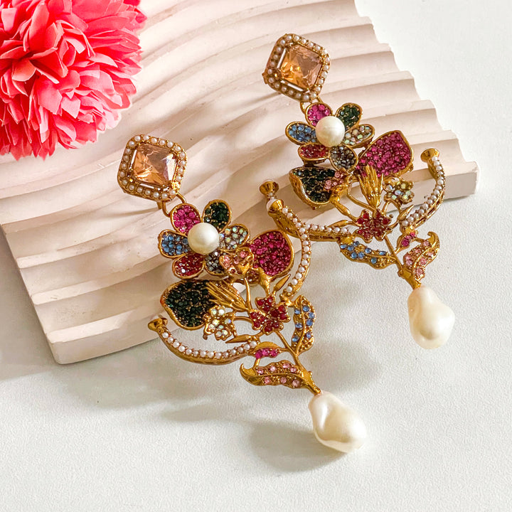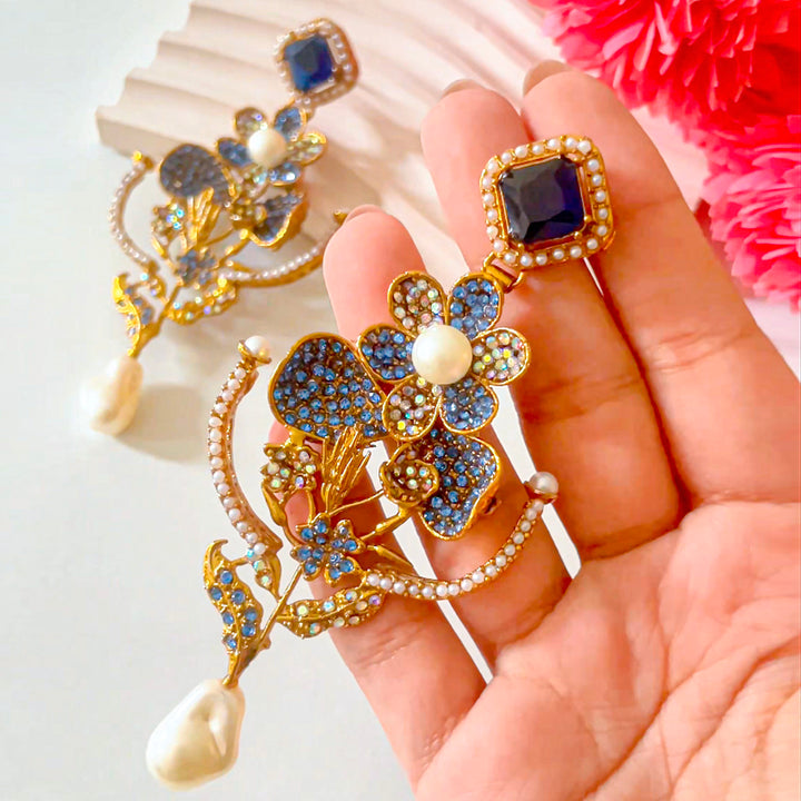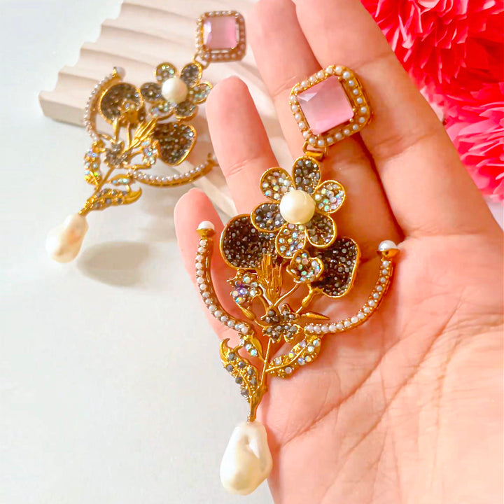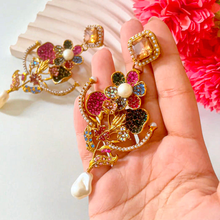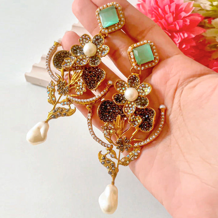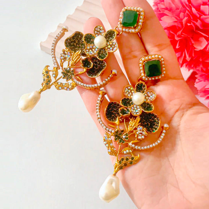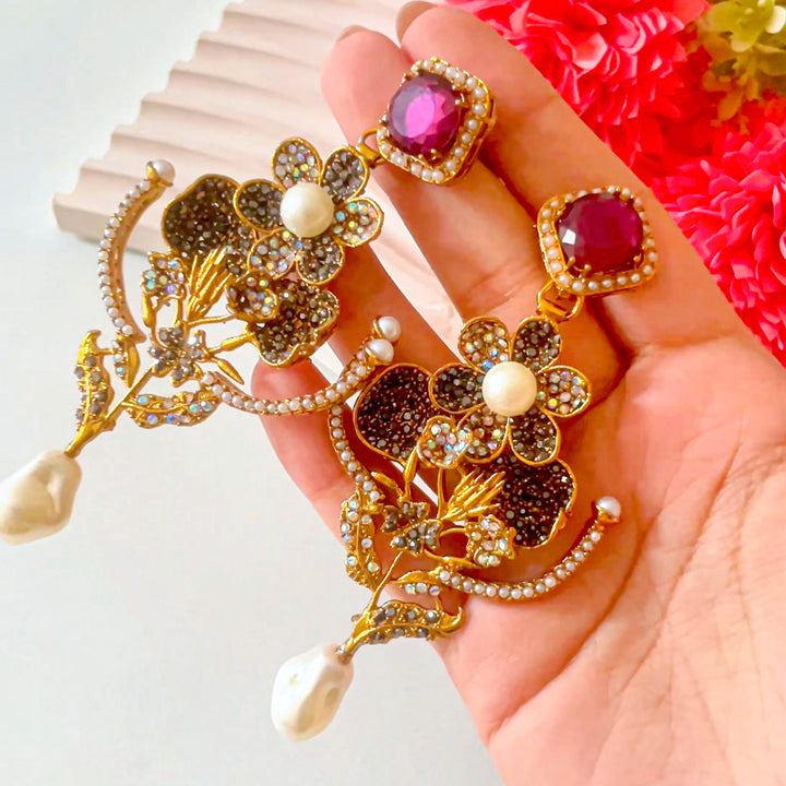 Elevate your style with Heer-e-Rang – ER-111, a stunning fusion of traditional artistry and modern glamour. These intricately crafted earrings feature floral and botanical designs adorned with crystal accents, pearls, and exquisite detailing—making them a versatile statement piece for any special occasion.