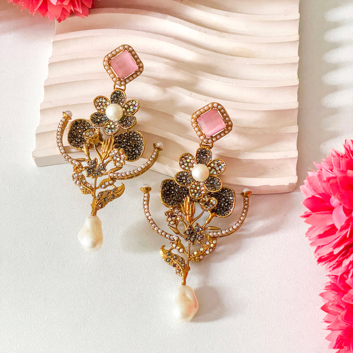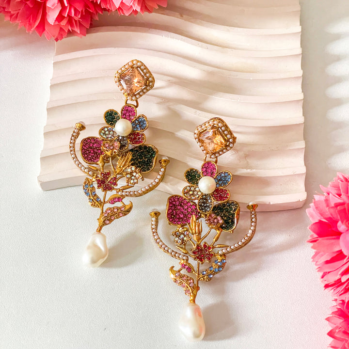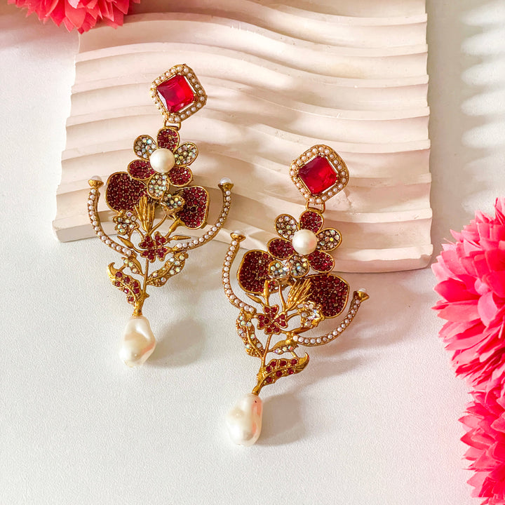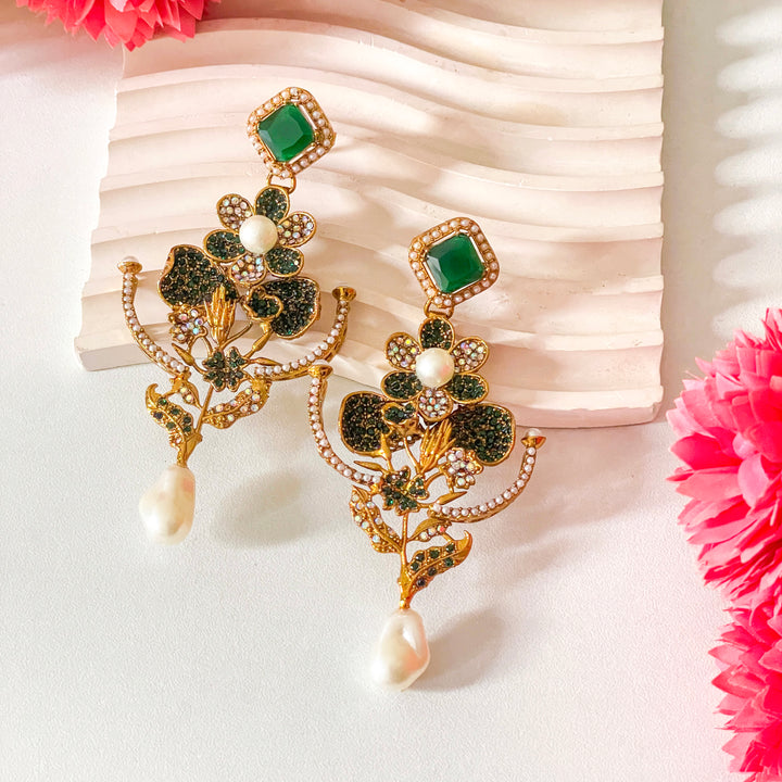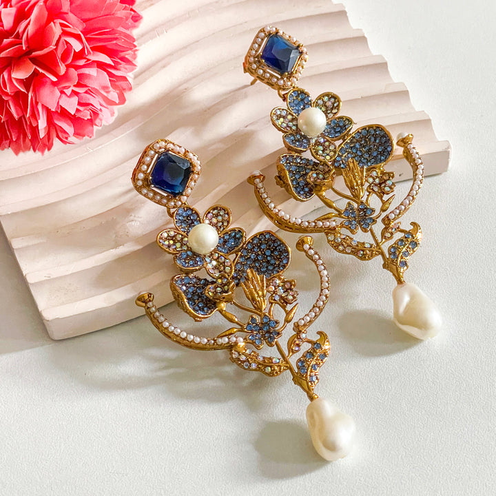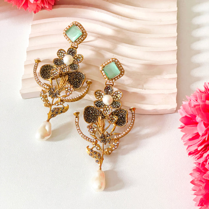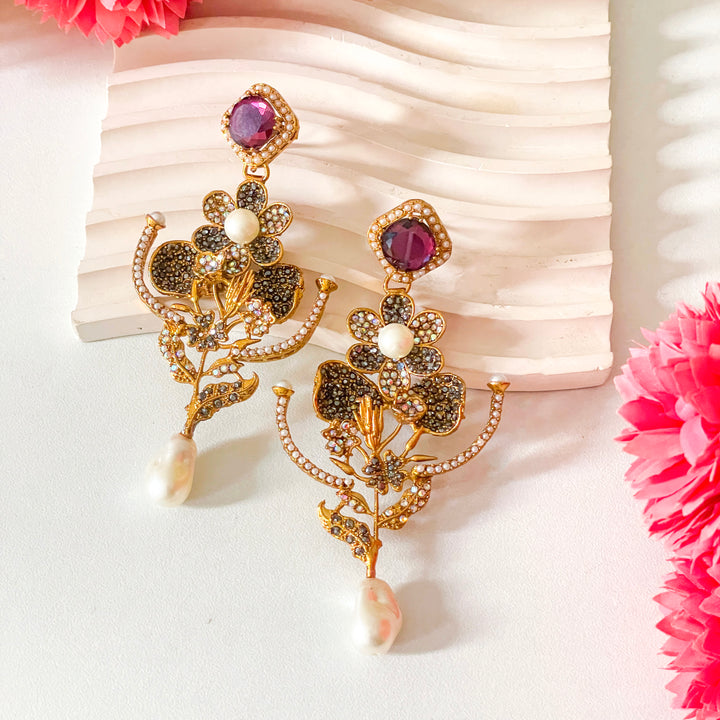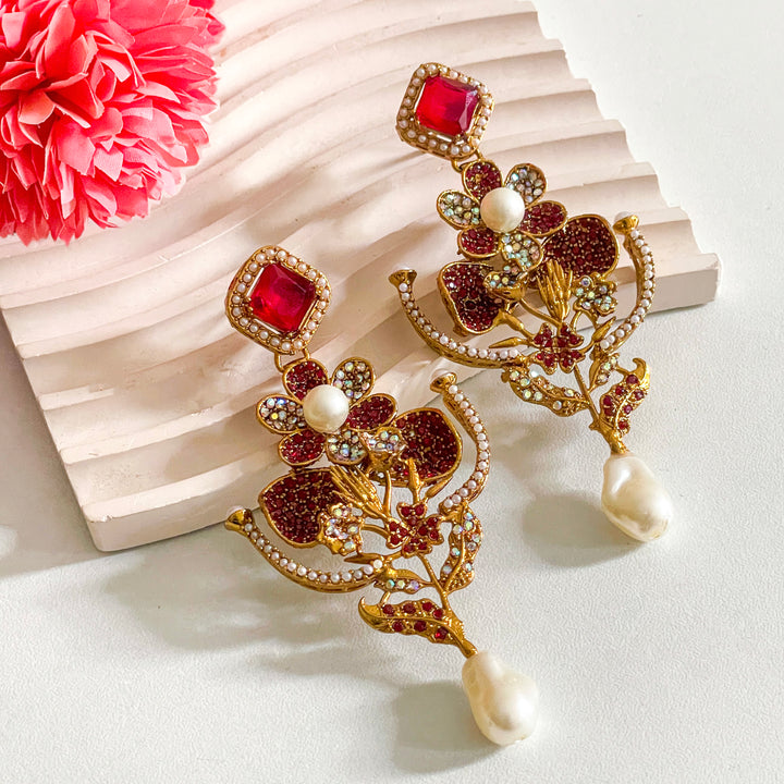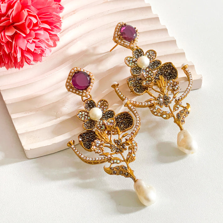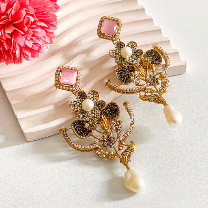 Elevate your style with Heer-e-Rang – ER-111, a stunning fusion of traditional artistry and modern glamour. These intricately crafted earrings feature floral and botanical designs adorned with crystal accents, pearls, and exquisite detailing—making them a versatile statement piece for any special occasion.