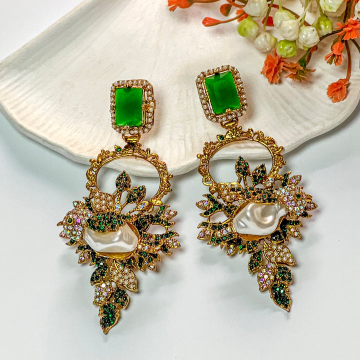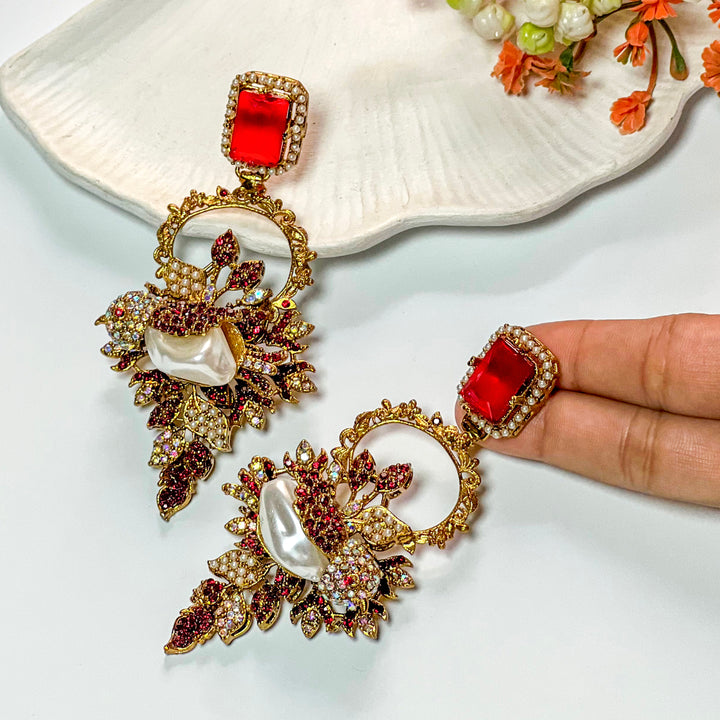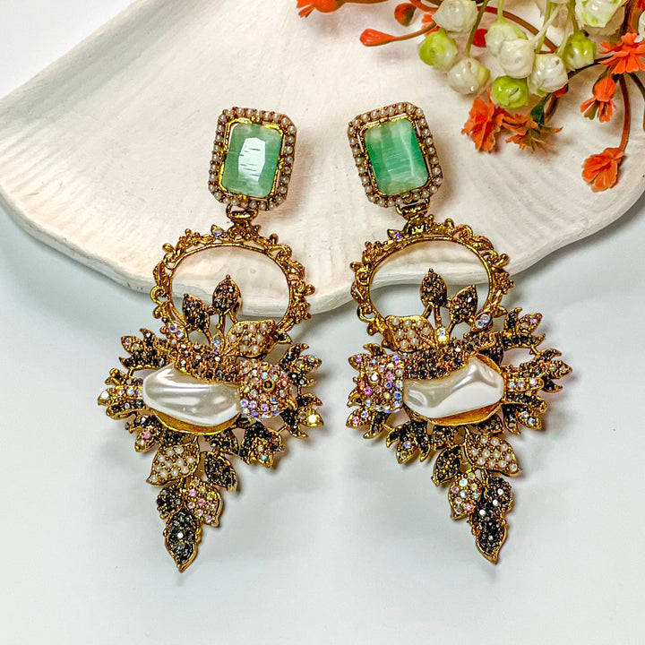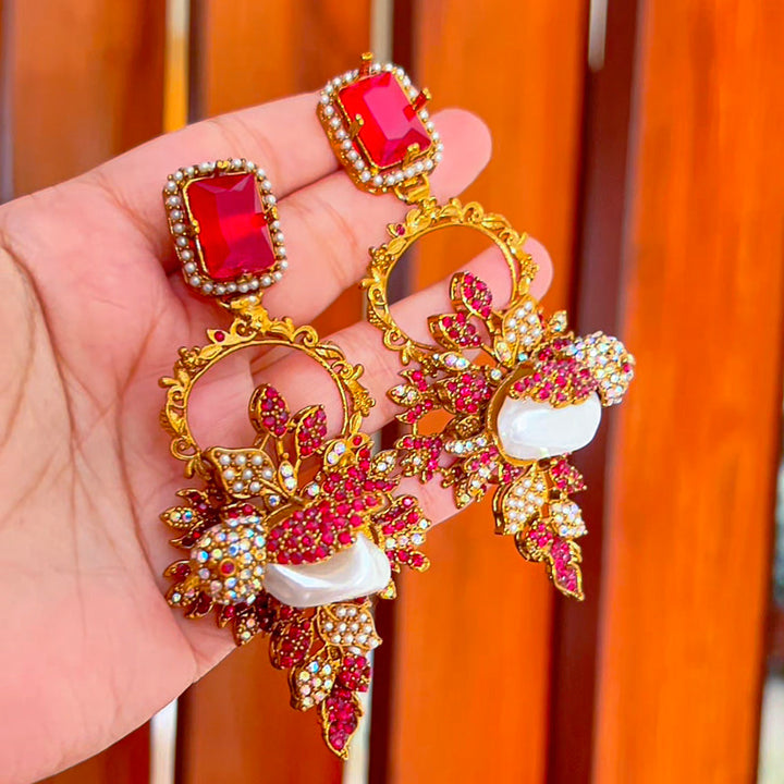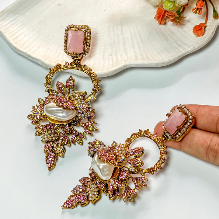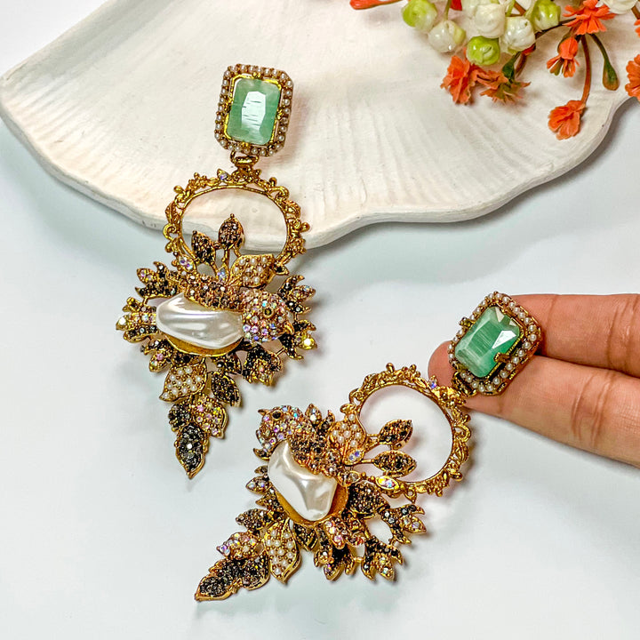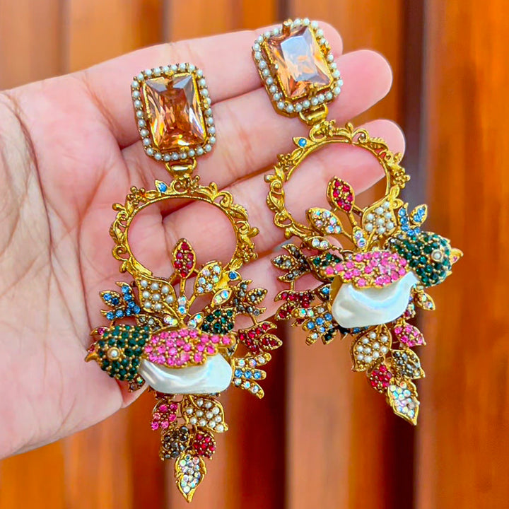 Elevate your style with Gulbahaar Earrings – ER-114, a stunning fusion of traditional artistry and modern glamour. These intricately crafted earrings feature floral and botanical designs adorned with crystal accents, pearls, and exquisite detailing—making them a versatile statement piece for any special occasion.