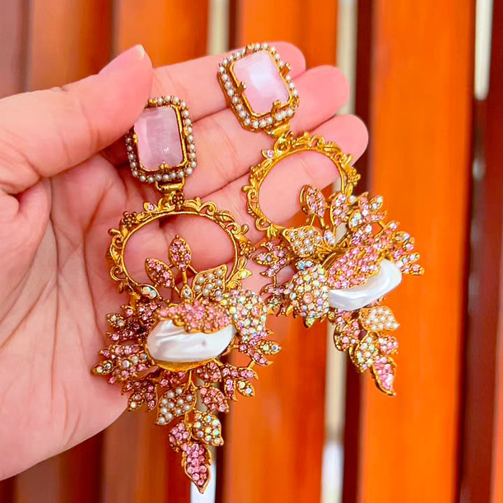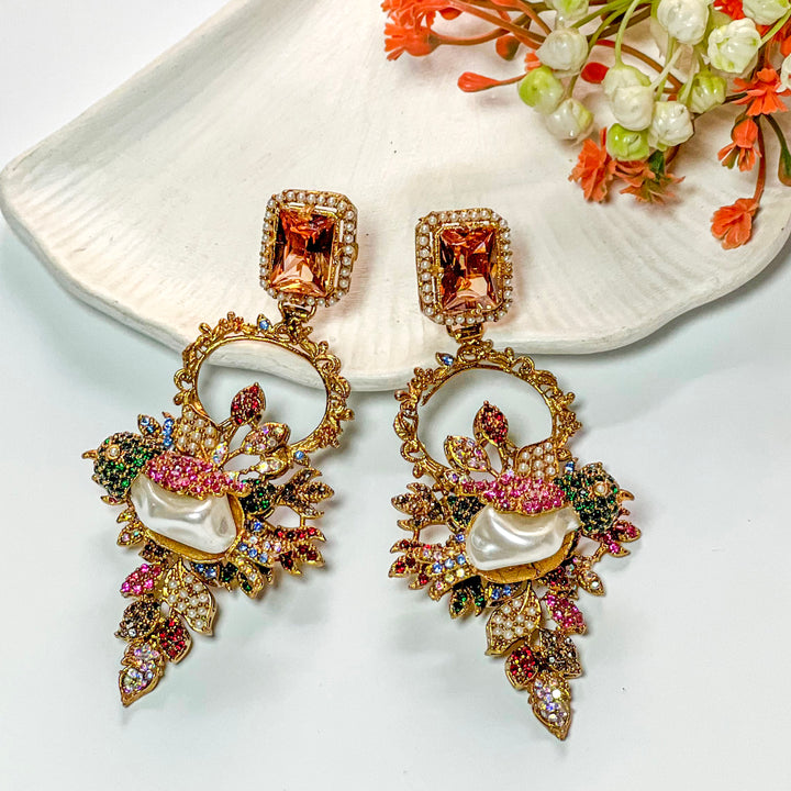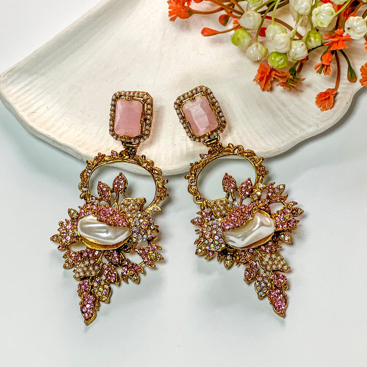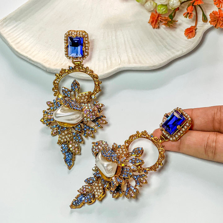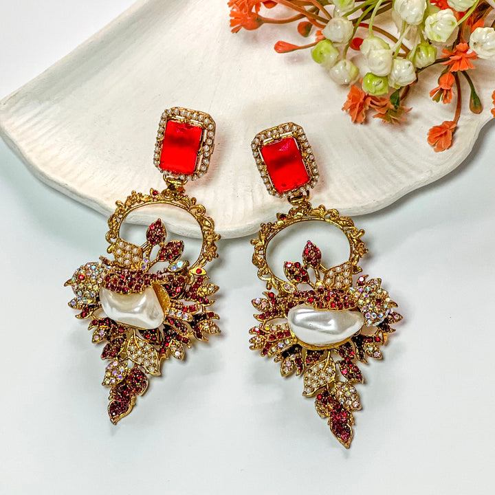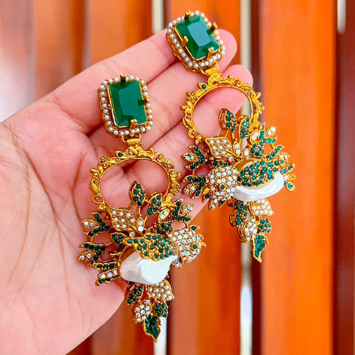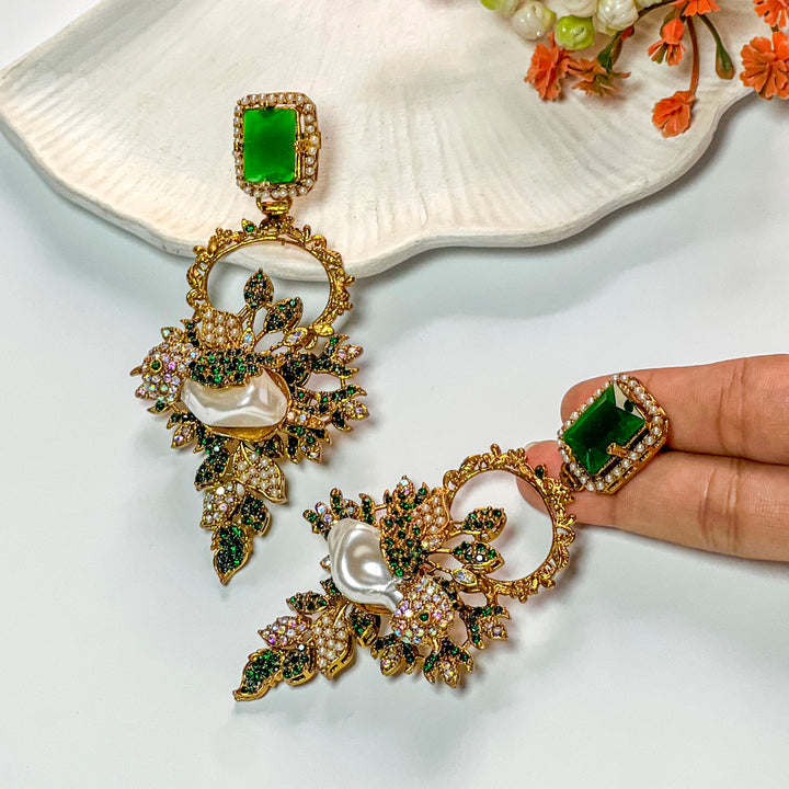 Elevate your style with Gulbahaar Earrings – ER-114, a stunning fusion of traditional artistry and modern glamour. These intricately crafted earrings feature floral and botanical designs adorned with crystal accents, pearls, and exquisite detailing—making them a versatile statement piece for any special occasion.