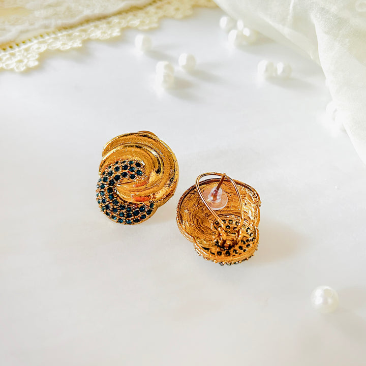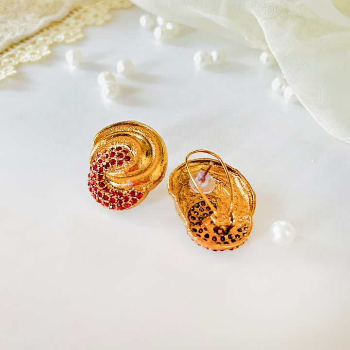 Zarqaa, a name suggesting profound depth and brilliant clarity, captures the hypnotic movement of a spiral of light and the passionate glow of a jewel. These earrings are a poetic study in texture and concentrated brilliance, evoking the feeling of a prized artifact steeped in elegant history. They are designed to adorn with confident, sculptural grace, celebrating femininity with both warmth and intensity.