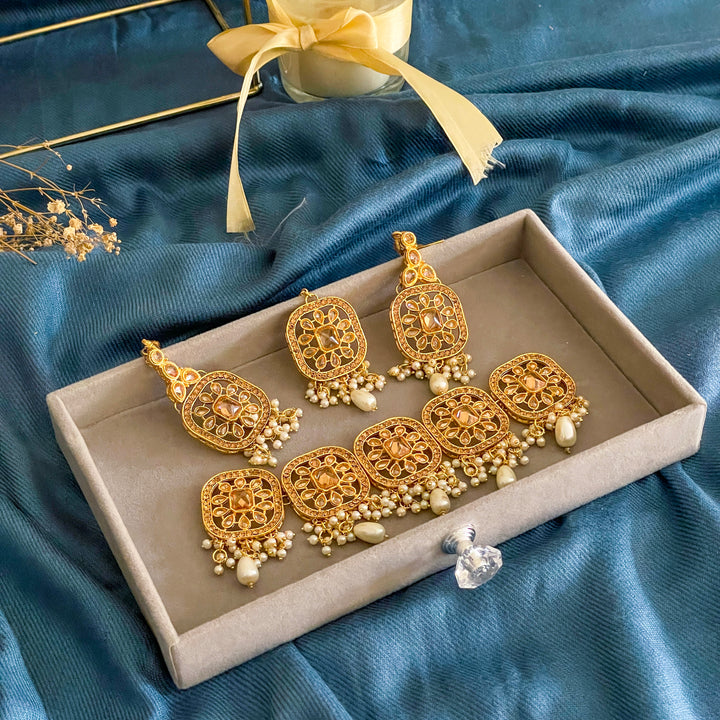 - Matching Earrings: Includes a pair of earrings with coordinating square motifs and filigree work.