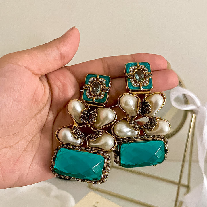Immerse yourself in the exquisite beauty of the Mehr-Meena Gemstone Symphony earrings. These stunning earrings showcase the intricate artistry of Meenakari, a traditional Indian enameling technique, combined with the brilliance of precious gemstones. The delicate Meenakari patterns, adorned with vibrant colors, create a captivating visual spectacle. The earrings feature a symphony of gemstones, including dazzling diamonds, sparkling emeralds, and luxurious pearls, adding a touch of opulence and elegance.