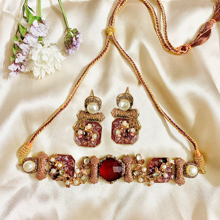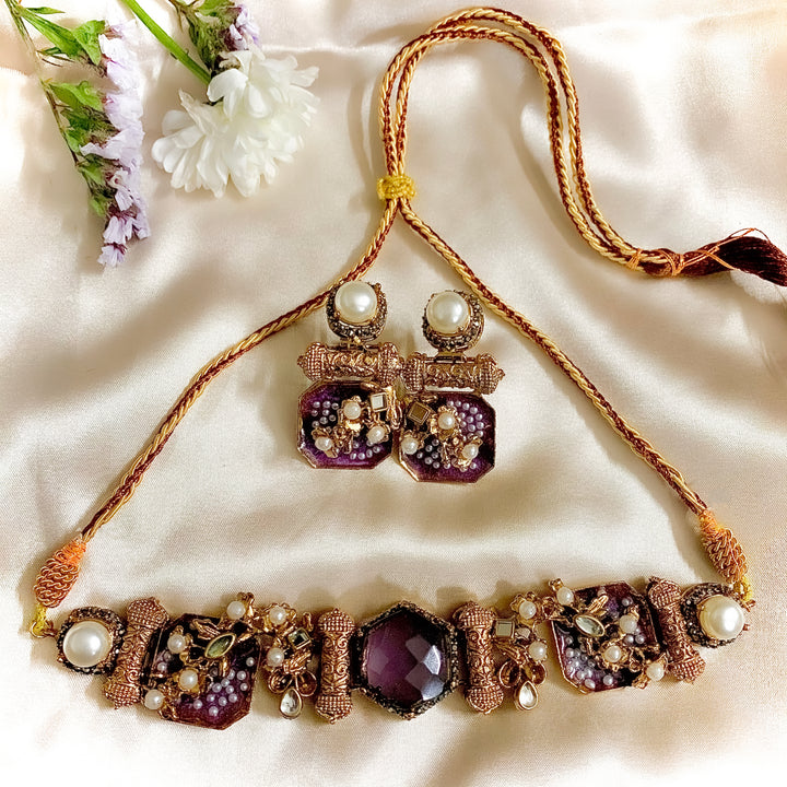 Experience regal elegance with the Shan e Heera Emerald Radiance Choker Set CS-48. This exquisite set is a symphony of artistry, featuring a stunning interplay of vibrant emeralds, lustrous pearls, and intricately crafted gold-toned accents. The choker, adorned with a mesmerizing emerald centerpiece, rests gracefully on the neckline, while the matching earrings complete the look with understated sophistication.