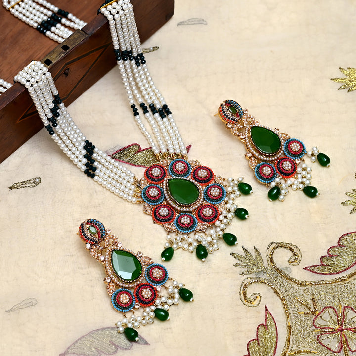Whispering Pearls Mala & Earrings (S-32)